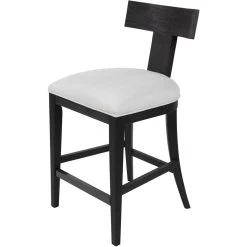 Idris 38 Inch Charcoal Black Stain And White Fabric Counter Stool