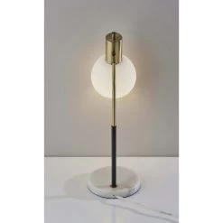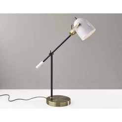 Adesso Casey 19 Inch 40.00 Watt Black And White With Antique Brass Desk Lamp Portable Light
