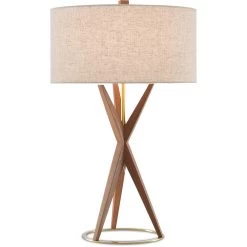 Volterra 28 Inch 150.00 Watt Crackled Taupe-Gray And Antique Brushed Brass Table Lamp Portable Light