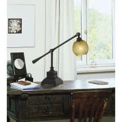 Boston 19 Inch 40.00 Watt Black With Antique Brass Accents Desk Lamp Portable Light, Simplee Adesso