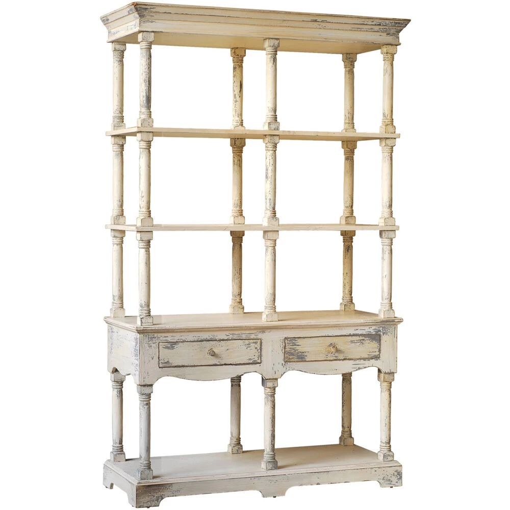 With a distressed white finish and classic styling, the Adela French Country Bookcase from the Southern Living Collection offers ever-needed storage and organization. In addition to books, store photos, potted plants, and personal treasures with casual elegance. This lovely bookcase blends function, durable wood construction, and an ageless style.