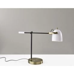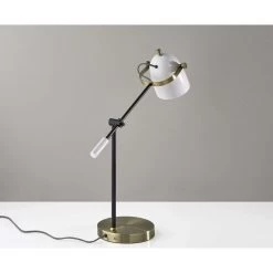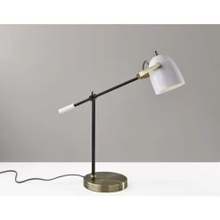 With a built in USB port, the Casey Desk Lamp is practical choice to stay connected in any room. A mix of black, white and antique brass metals creates a unique, color blocked style that adds a modern touch to your space. An adjustable shade and arm allows for maximum efficiency and convenience. The power cord is wrapped with black and white fabric turning a technical detail into a design enhancement. Bulb is not included.
