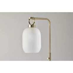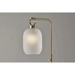 - Material Breakdown: Metal:70 Glass:20 Electric:10This lighting product is either UL or ETL listed, meaning that it has been tested and approved to meet the government-regulated safety standards for the USA.Smooth forms, linear details, and an elegant frame enhance a simplified mid-century modern look.An elegant, frosted glass shade softly diffuses the light casting a warm glow.Antique brass metal elevates the look.59″ height is ideal for living rooms, bedrooms, or offices.