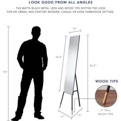 With a sturdy tripod stance, the Louise floor mirror offers a design statement that easily suits contemporary and transitional décor in the office or home. The matte black metal legs and eco-friendly rubber wood tips soften the look for urban, casual, or even updated lodge looks.