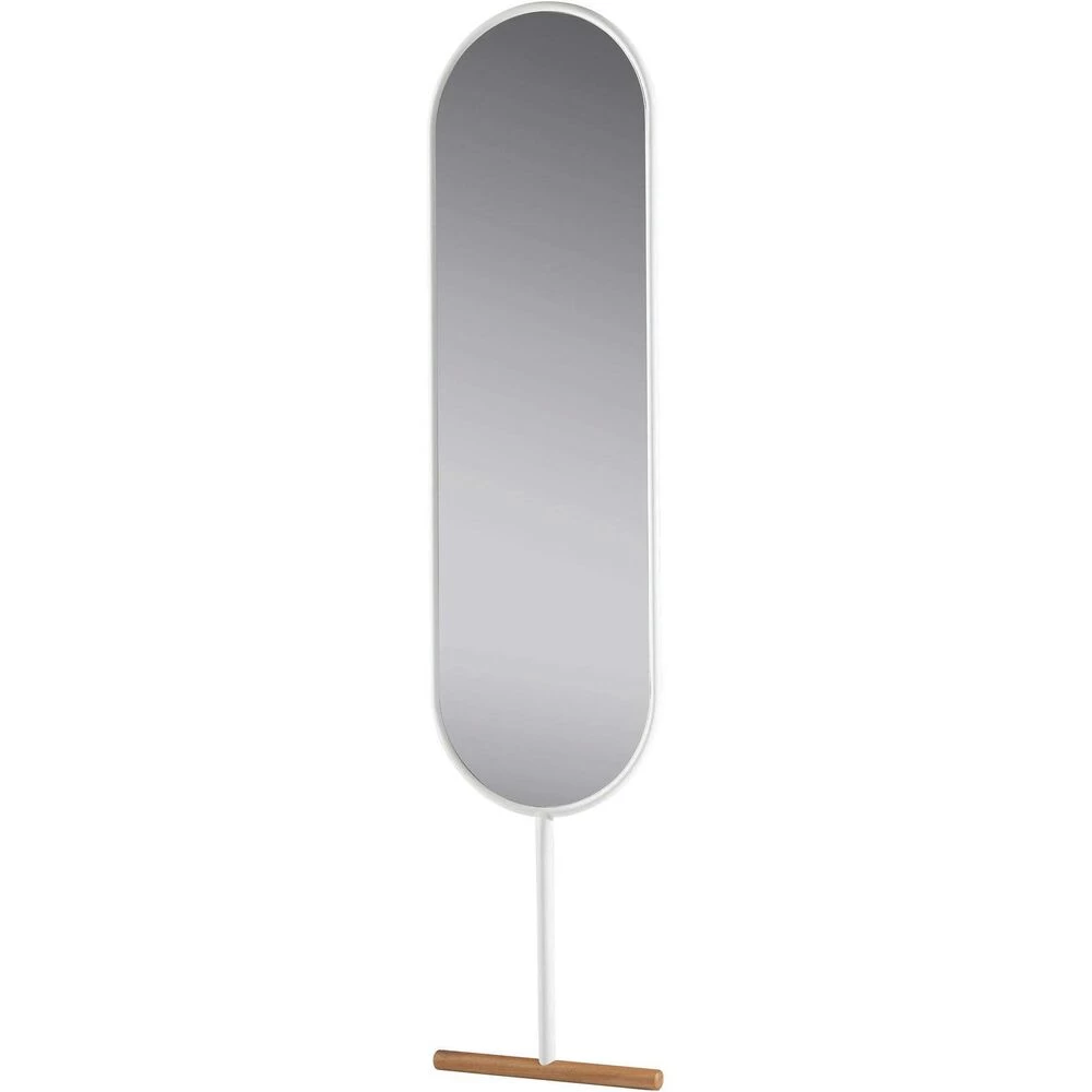 Reflect your best style with the Willy leaning mirror. This tall, 65.125″ x 15″ oval mirror opens up any space by reflecting light and creating the illusion of added depth, and leans easily against any wall without any installation required. It features a minimalist white metal frame, while its natural beechwood stick-shaped base presents a modern touch to this classic product.