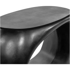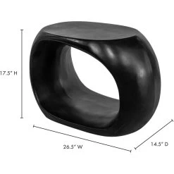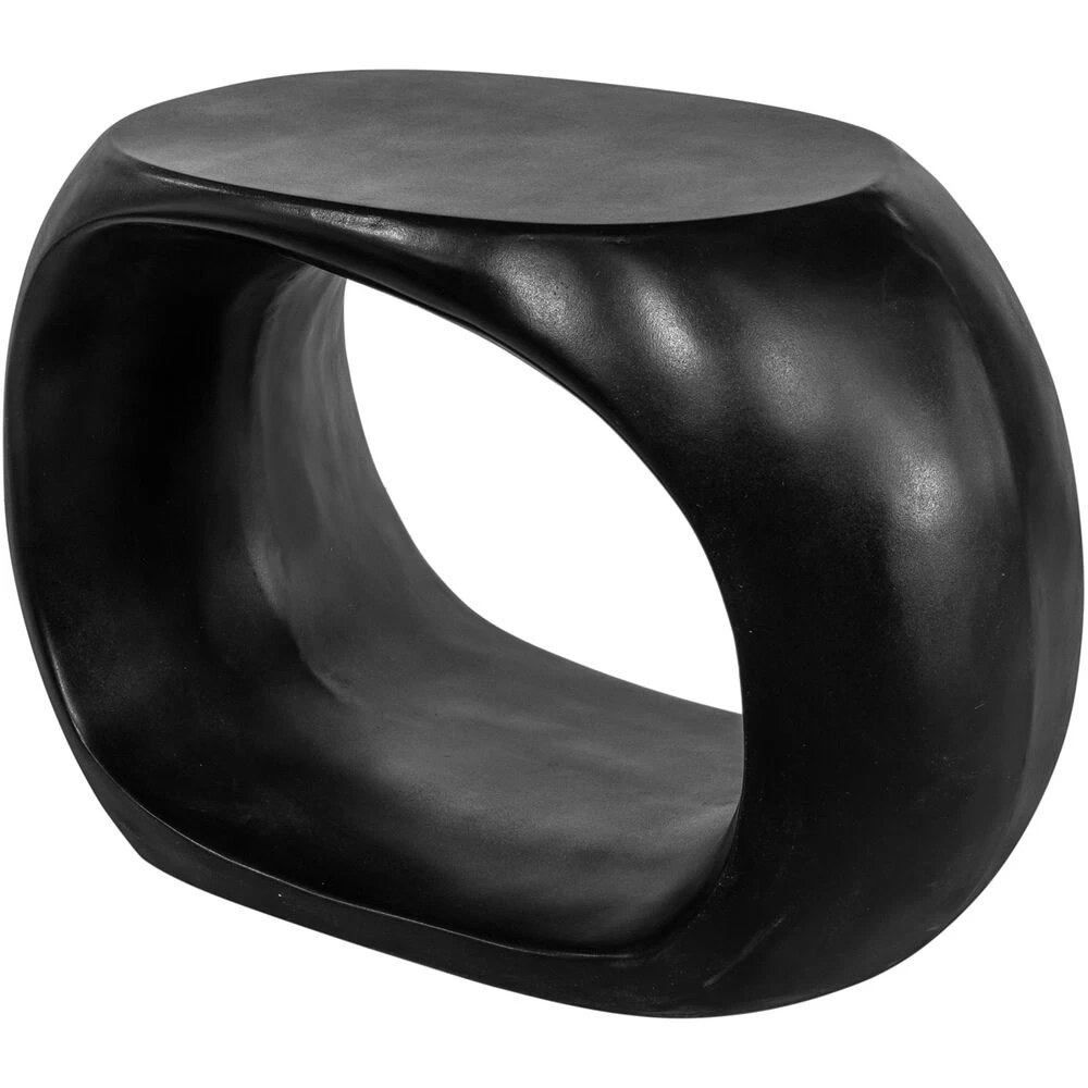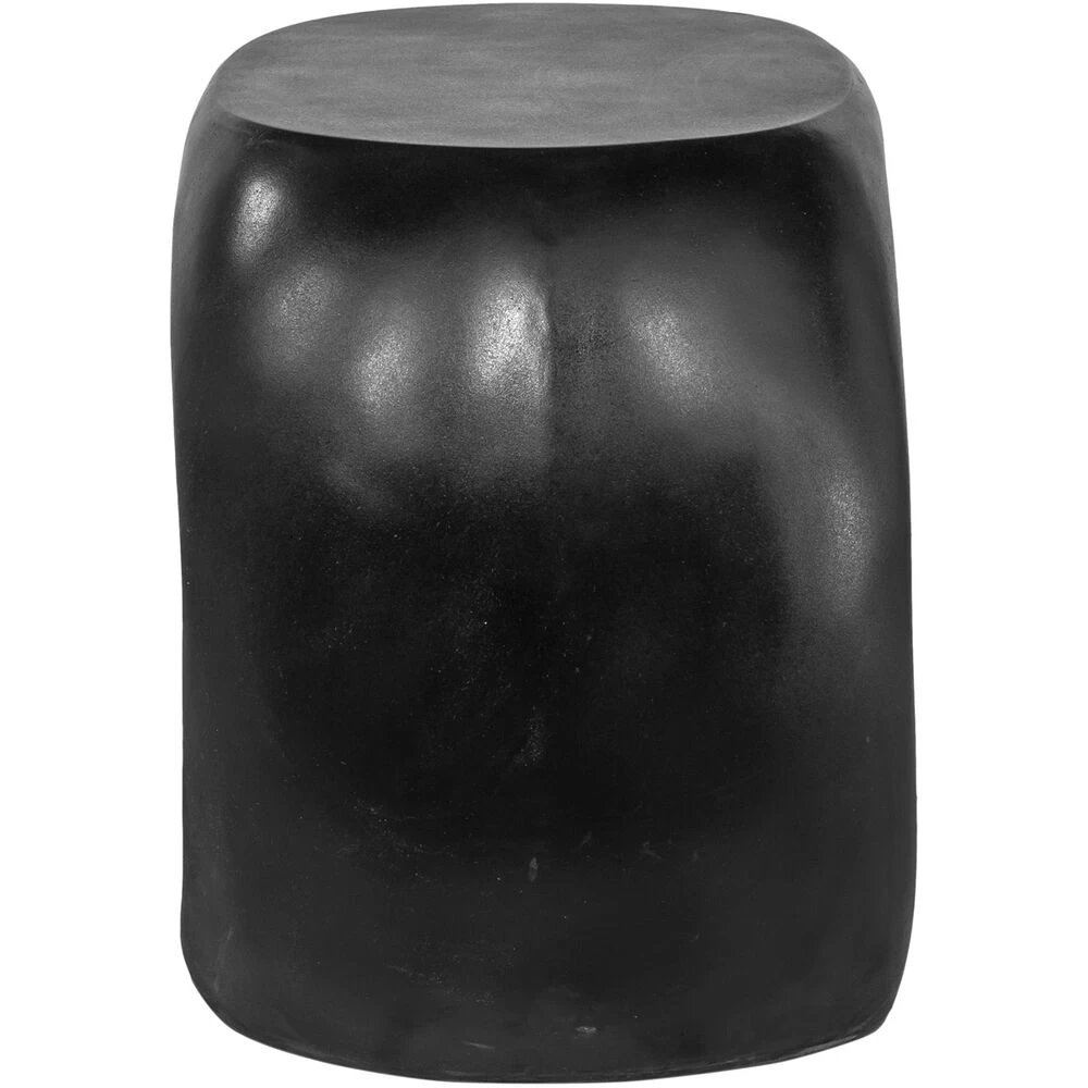 The blend of art and function into sculptural seating. This monolithic indoor or outdoor stool design is a work of art, ready to blend into any organic garden arrangement or to place beside the softness of your sofa as an end table. The texture play is up to you. Made of high-quality concrete and fiber mix, all blacked out to provide comfortable voguish seating for a modern interior.