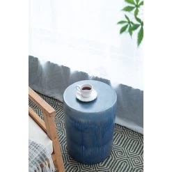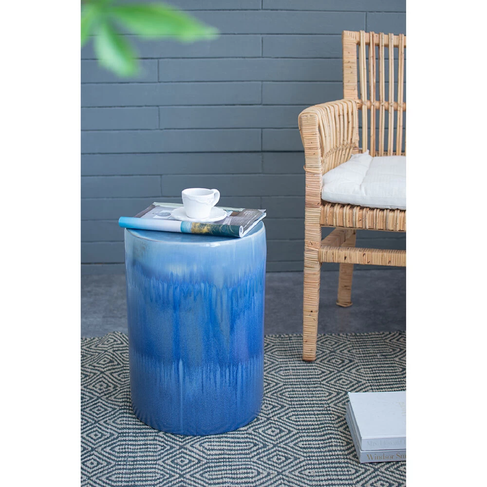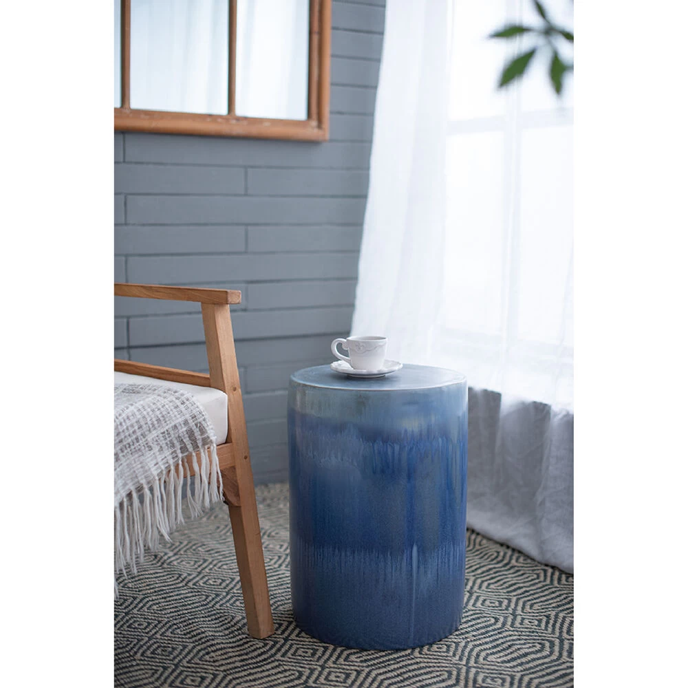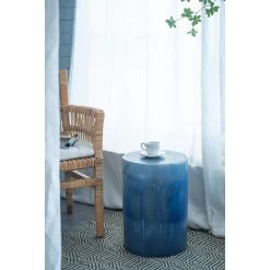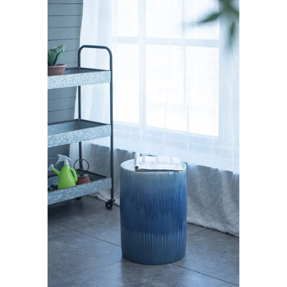 Round Reactive Glazed Stool – 13″Dia. x 18″ – Gray/Blue/Purple