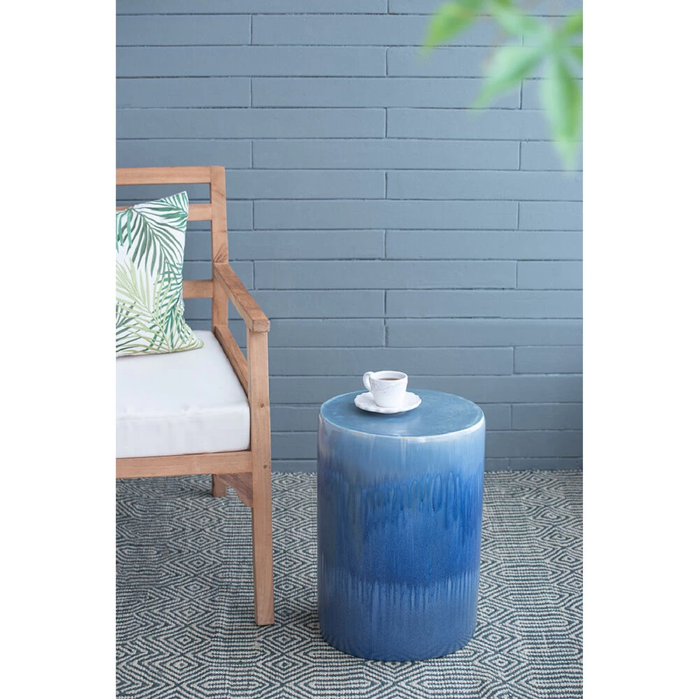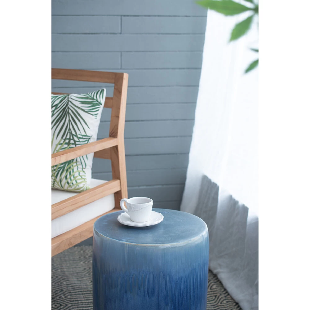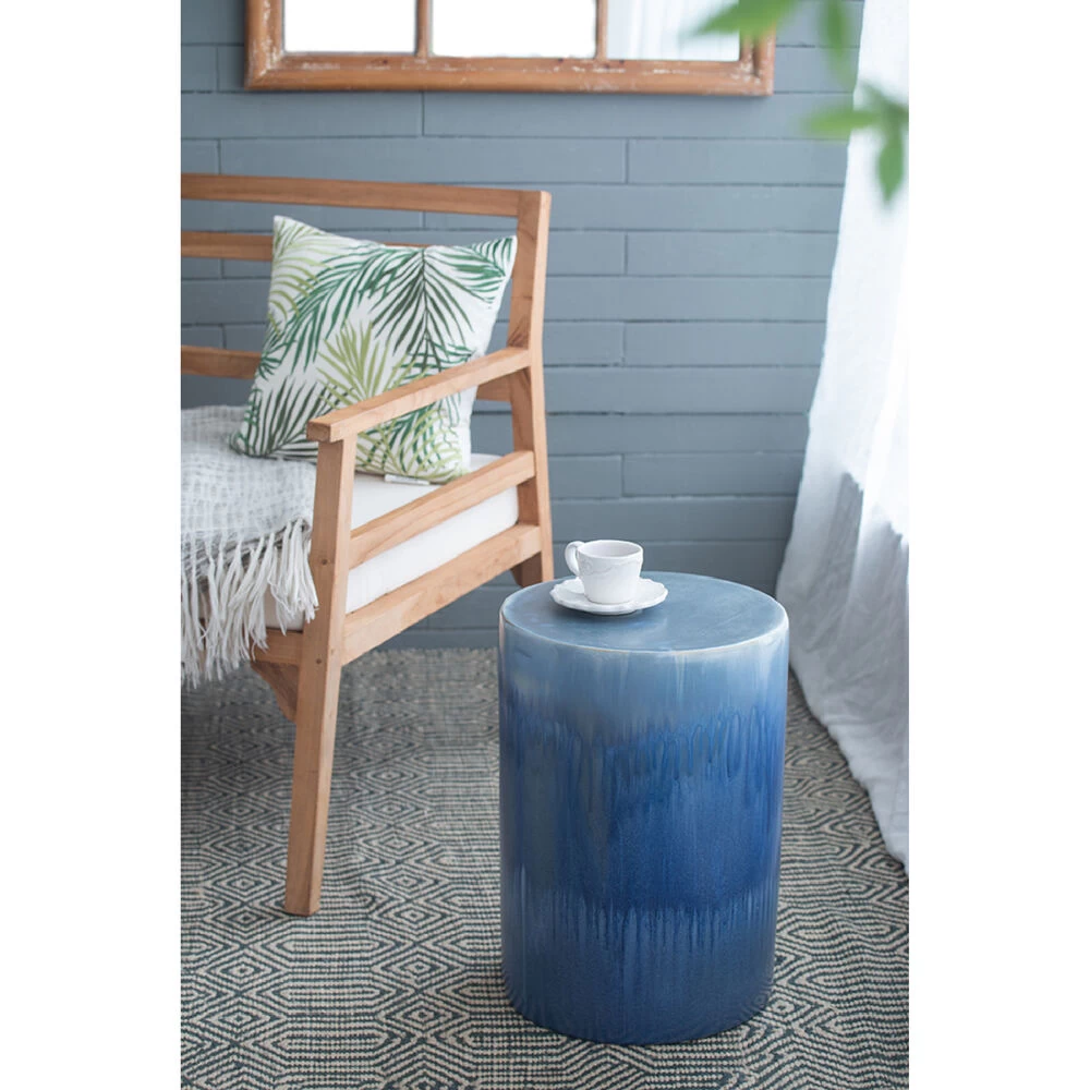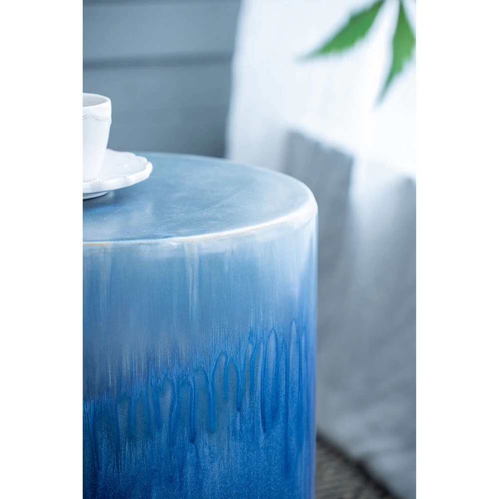 Round Reactive Glazed Stool – 13″Dia. x 18″ – Gray/Blue/Purple