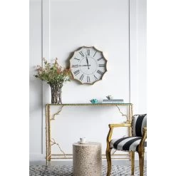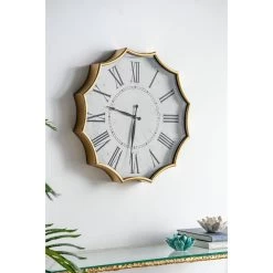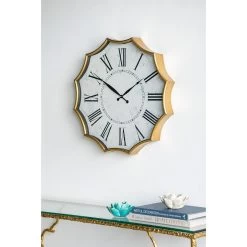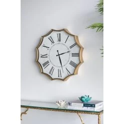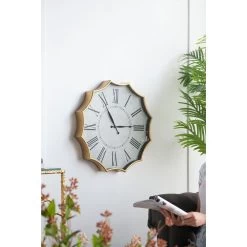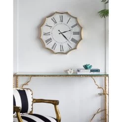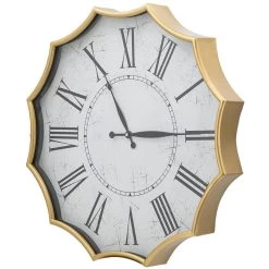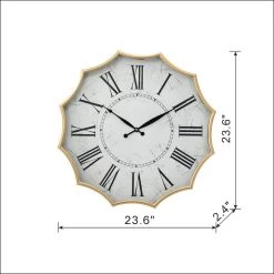 Vintage Roman Numeral Wall Clock with Gold Trim – 23.5″ x 2.5″ x 23.5″ – White/Black/Gold