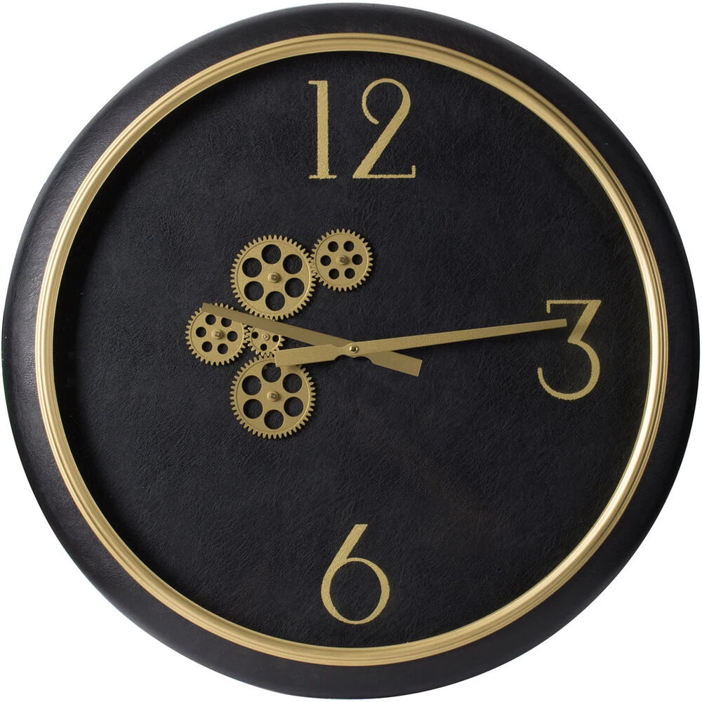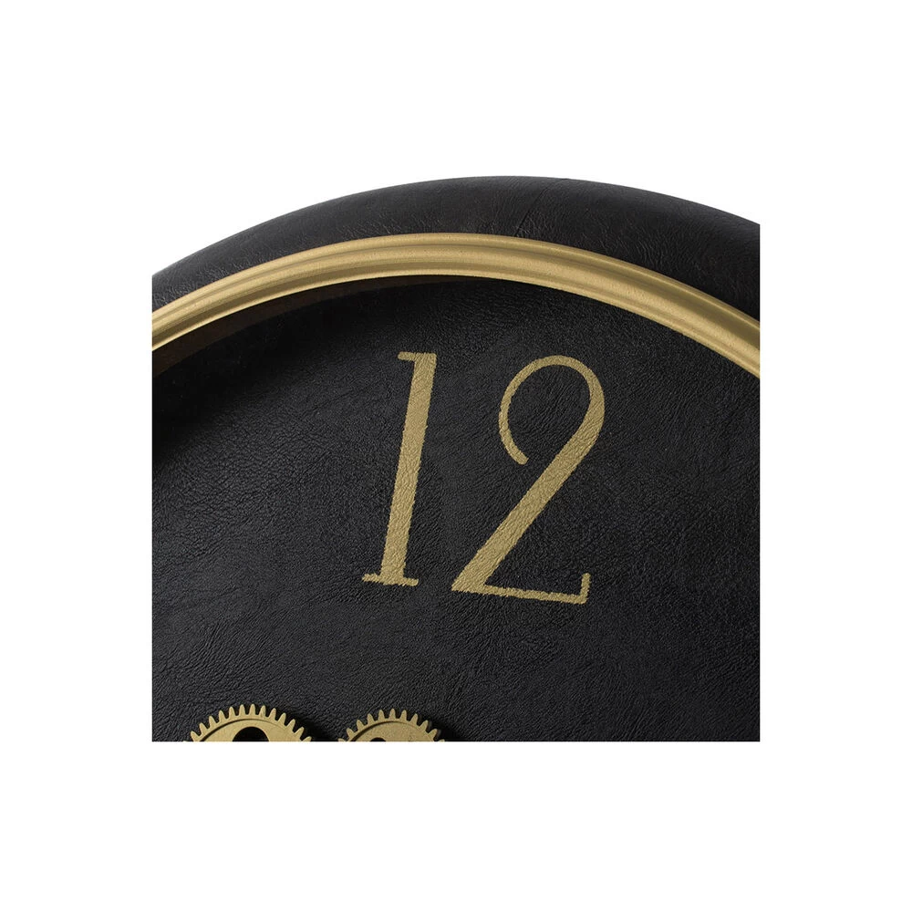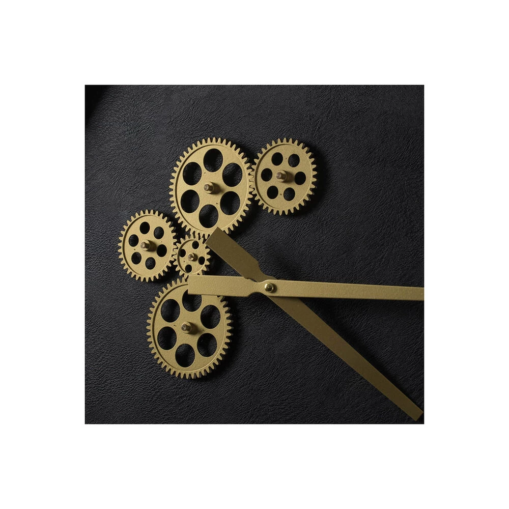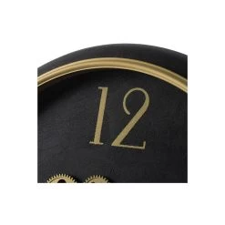Keep time with this dramatic Black Gear Clock featuring exposed gears and a rich black finish accented with gold. This piece’s contemporary design incorporates vintage elements that enable it to complement a range of styles. Feature this sleek, slightly whimsical clock in a refined office, lavish master bedroom, or eclectic living room for a bold look that will keep you stylishly on time.