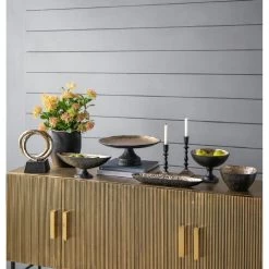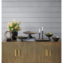 Decorative Aluminum Oval Bowl on Stand – 13.5″ x 4.5″ x 4.5″ – Black/Gold