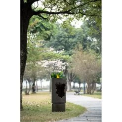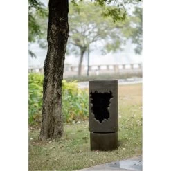 Make your backyard a space you love by adding an element of zen with breakaway design cylinder outdoor fountain. This outdoor fountain measures 19.5 inches wide by 56.5 inches tall and has a rich brown color. This backyard fountain is made from 100 percent cement, making it well-suited for a wide variety of climates.