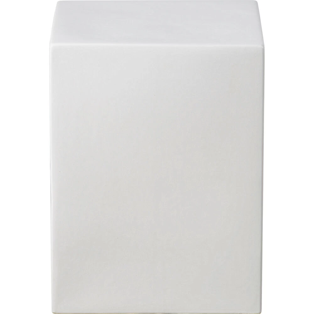 Modern design meets the great outdoors through this table design. With a ceramic composition and glossy white exterior, it pops amid greenery, stone or brick alike. Featuring a 16-inch height and 12-inch square base, the potential for function is limitless.