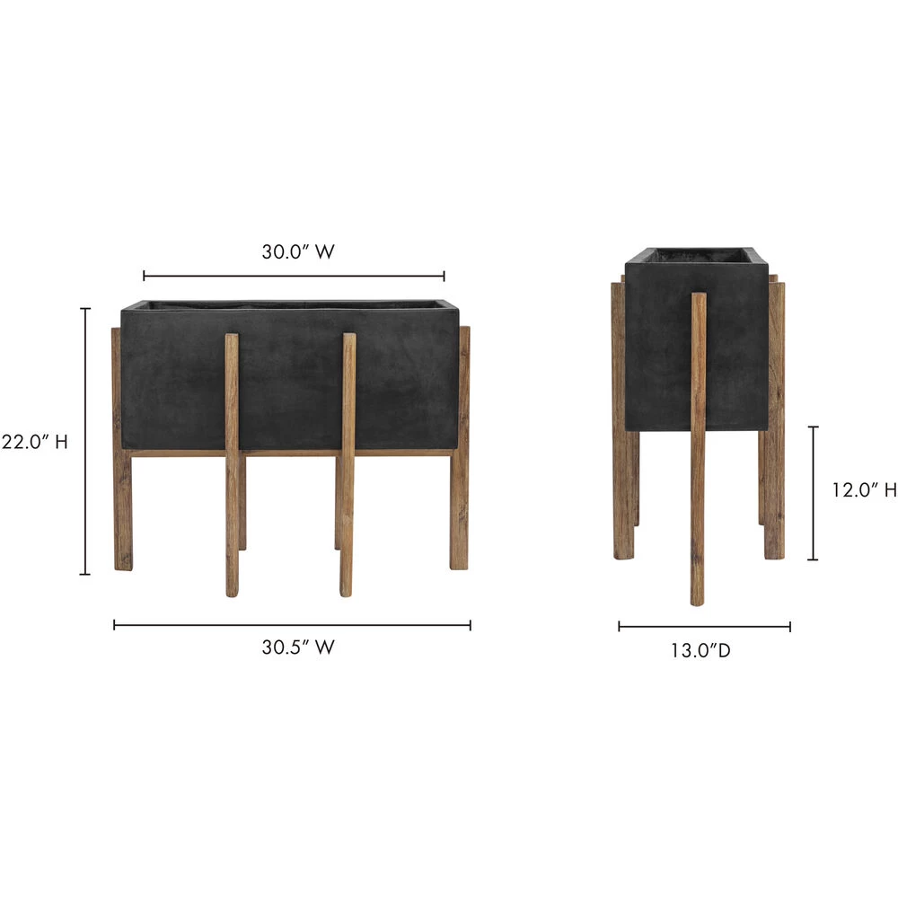 Spruce any contemporary space with the Atlantic planter. The vases concrete construction is accented with a natural grained Acacia wood frame to elevate the plant greenery. Inside or outside the home, the Atlantic planter wonderfully accentuates its home space.