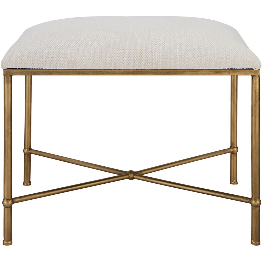 Thoroughly Modern Yet Inspired By The Classics, This Small Bench Displays A Stylish Iron Frame In A Rich Antique Gold Finish, Upholstered In A Crisp White Textured Fabric.