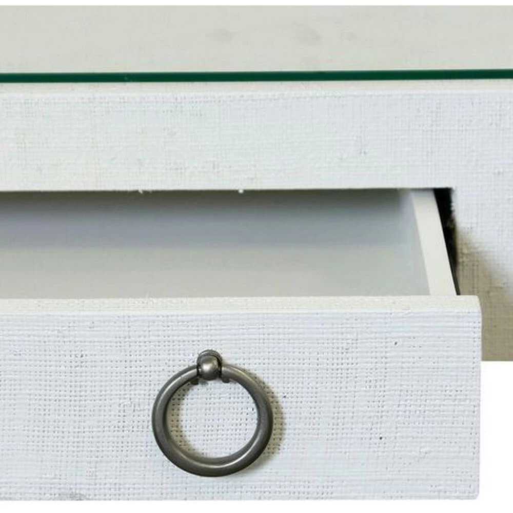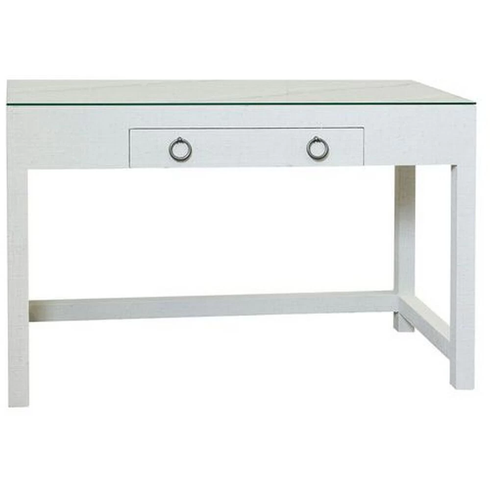 Bay St. Louis – Woven Raffia Desk with Glass Top – Bone Gray Gray, Silver Leaf Finish