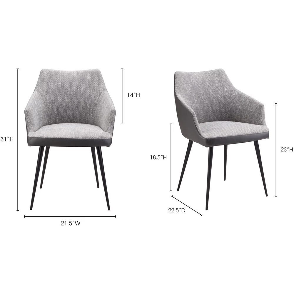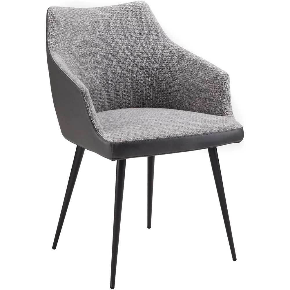 The Beckett dining chair features a curved, inviting silhouette with tapering steel legs. A pleasant contrast, the exterior of the chair is wrapped in sleek easy-clean-vegan leather, while the seat is soft fabric upholstery. The perfect seat to kick back in while waiting for Godot or simply enjoying a nice meal with friends and relations.