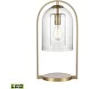 The Bell Jar Brass Table Lamp is perfect for adding a touch of modern farmhouse style to a living room, bedroom or hallway with an elevated twist. Its curved metal frame comes in rich, aged brass and sleek matte black finish and supports within it a clear glass dome to shade its single bulb. This lamp also features a convenient line switch.