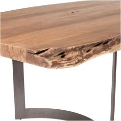 The Bent collection puts nature’s craft front and center. Made of beautiful solid acacia wood, rustic live edge detailing shows off the unique knots and whorls of the wood. This dining table’s expansive surface beautifully showcases the wood’s personality, and is offset by a sturdy industrial metal base. Pair with other pieces in the Bent collection for a complete look.