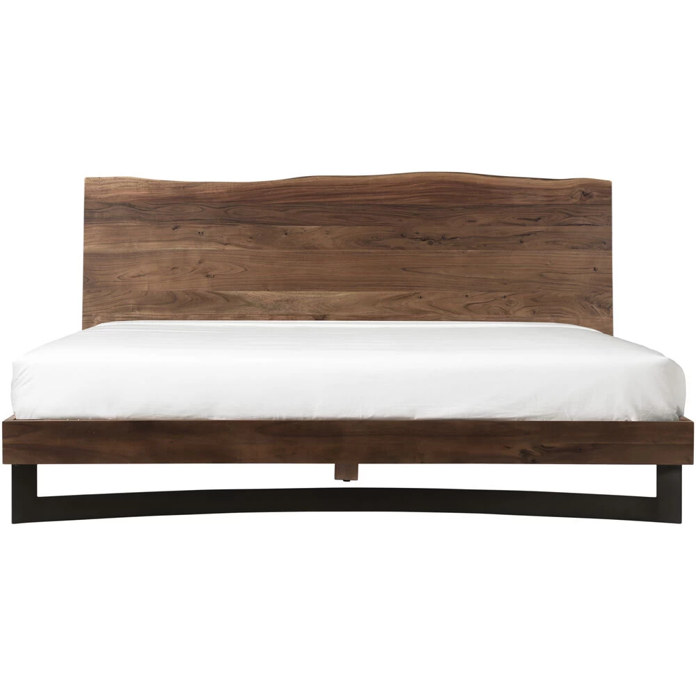 The Bent collection puts nature’s craft front and center. Made of beautiful solid acacia wood, rustic live edge detailing shows off the unique knots and whorls of the wood. An organic element for your bedroom, the Bent king bed’s expansive live edge headboard is a showcase for the acacia. A bent iron piece adds an industrial juxtaposition to the natural elements. Pair with other pieces in the Bent collection for a complete look.