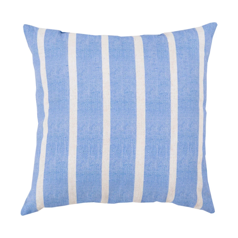 Craft a classically chic look for your outdoor or indoor space with this simple stripe pillow. Featuring a bold lined stripe pattern in light blue and white, this piece fashions a look of understated simplicity perfect for any room. This pillow contains a Virgin Poly Styrene Bead fill providing a reliable and affordable solution to updating your indoor or outdoor decor.