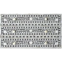 - Materials Used: Durably constructed using: Mango wood solids, MDF, resin, Mother of Pearl