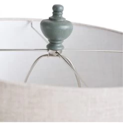 Bourgault – 64″ Antique French Farmhouse Polyester Resin Floor Lamp – Deep Olive Sea Blue Finish – Heather Oatmeal Empire Shade