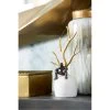 Inspire mindfulness anywhere in your home with this serene Buddha head sculpture. The warm coloration and rich texture is reminiscent of weathered wood carvings, giving an antique appearance for timeless appeal. Standing at 12″ in height, this piece is large enough to catch the eye yet easy to display on a shelf or table.