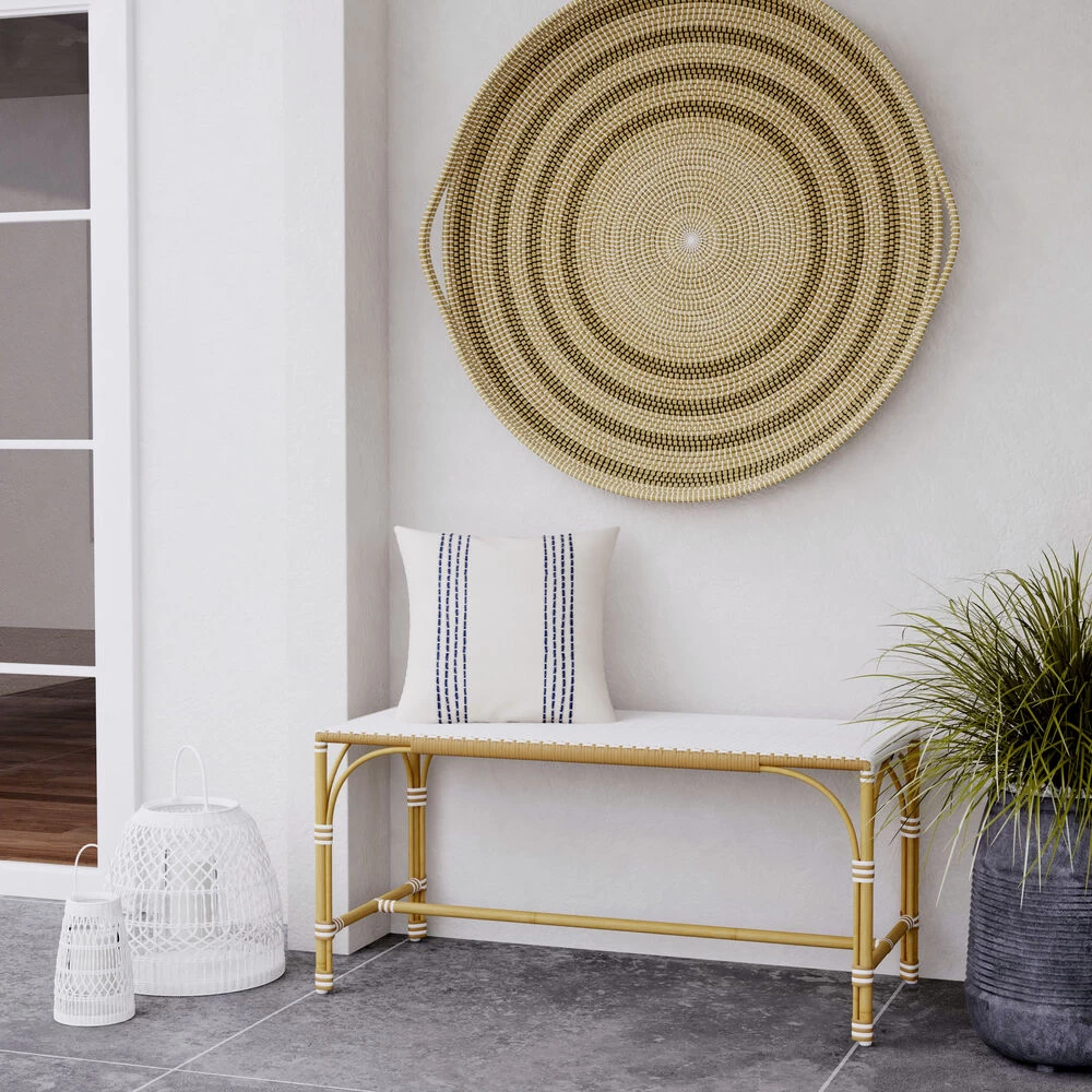 Butler Specialty Company Tobias Outdoor Rattan and Rectangular Dining Bench, Beige and White
