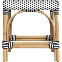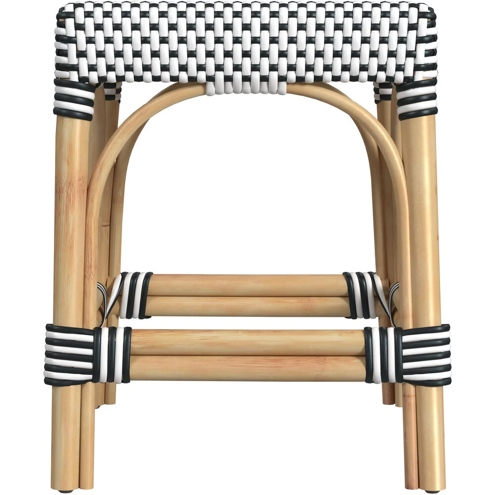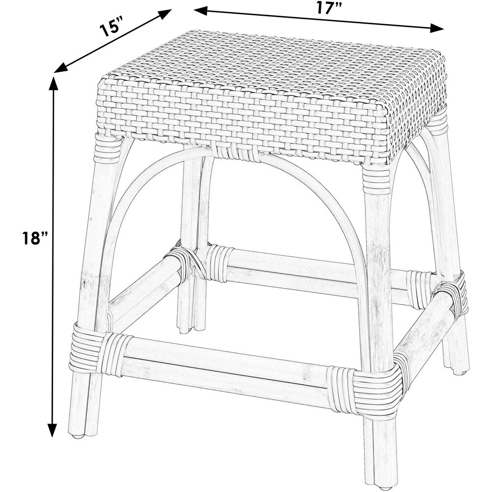 Butler Specialty Company Robias Rattan Rectangular 18″ Dining Stool, White and Black Dot