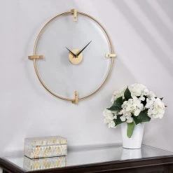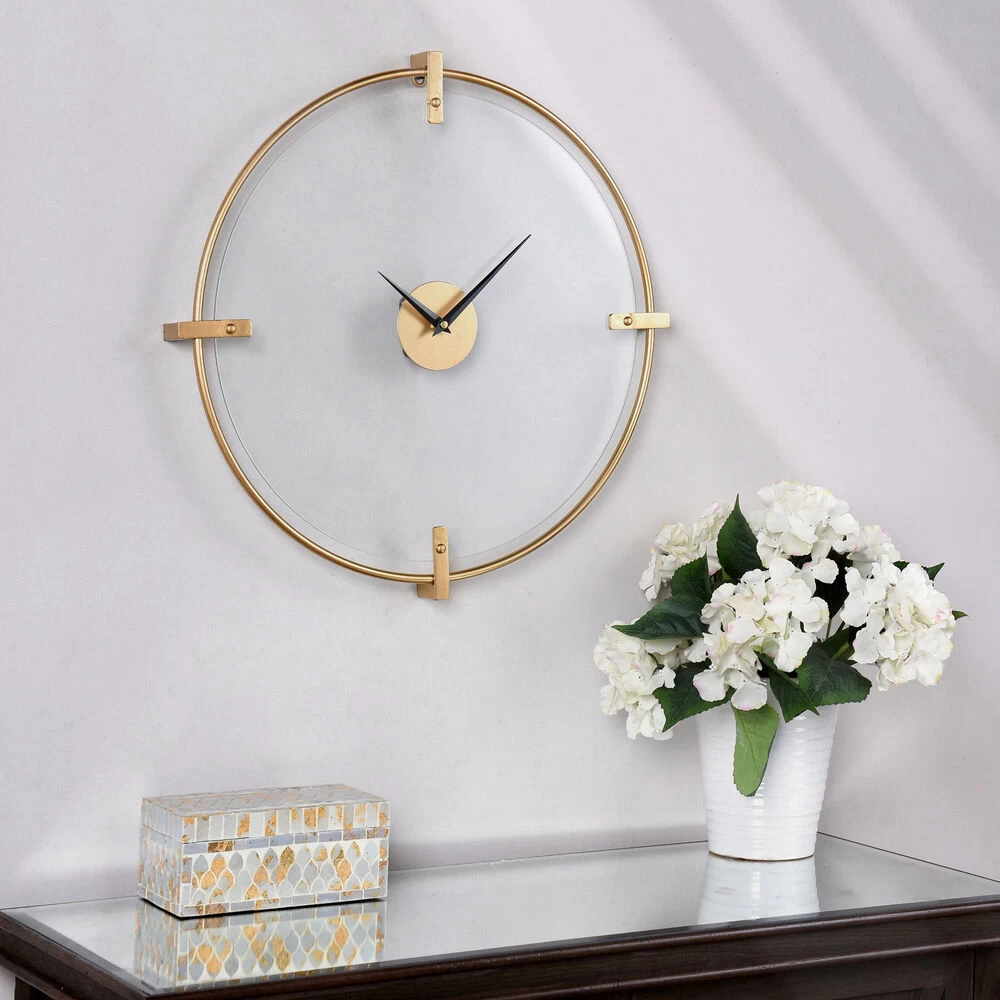 Modern Wall Clock With Floating Glass Dial – Matte Gold Finish