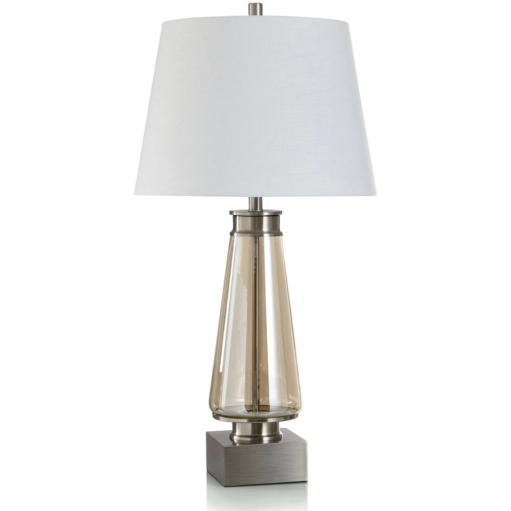 Champagne Luster Table Lamp – Colored Glass and Brushed Chrome Body – White Shade