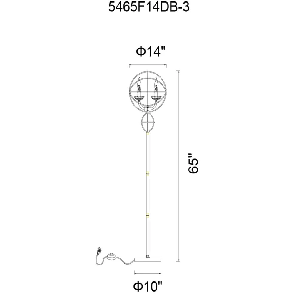 Add depth and character to any room with the Campechia 3 Light Floor Lamp. This charming lamp features a 14 inch open sphere caging three modern candelabras complete with crystal drip pans and crystal bead trimmings. Illumination comes from three candelabra bulbs that gently diffuse light. Get this light fixture and be able to bring the warmth of simpler times to your modern space.