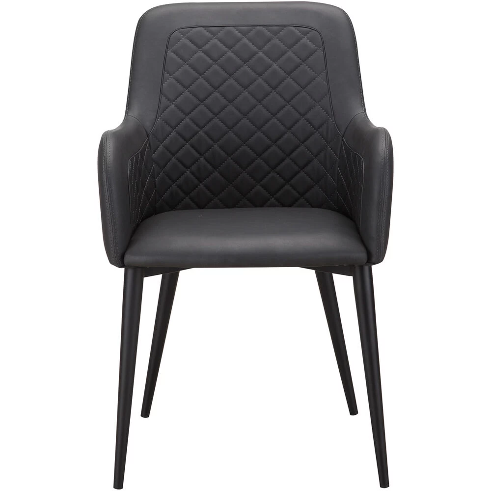A diamond of dining design. Both refined and contemporary, the Cantata dining chair is made with sturdy steel legs and durable, easy-to-clean vegan leather upholstery. The diamond tufted back and armrests give this seat a flair of elegance, making it an ideal chair for long dinners and the occasional card game.
