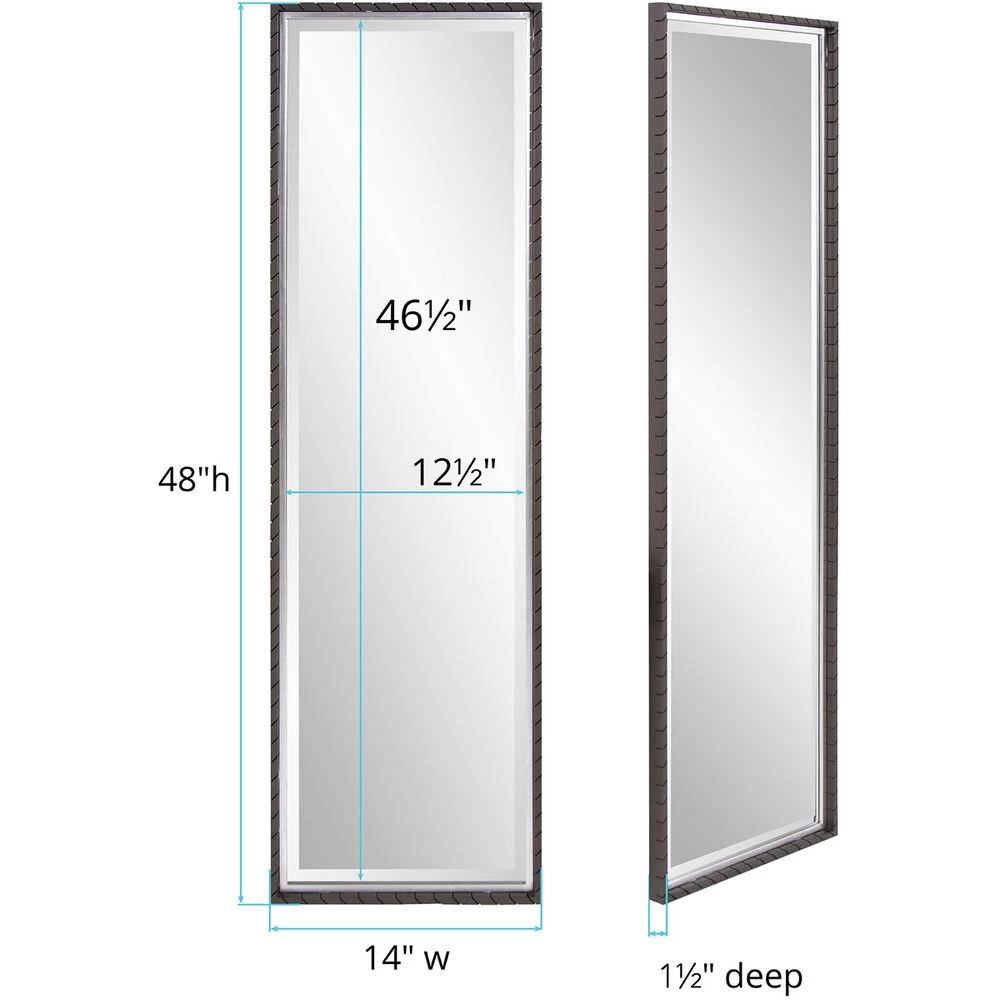 The slim new styling of our Cantera dressing mirror easily compliments today’s smaller living spaces. This mirror is contemporary in design with its diagonally cut black iron frame with a silver inset. This mirror gives you the look and feel of today’s fast pace lifestyle. D-rings are affixed to the back of the mirror so it is ready to hang right out of the box in either a horizontal or vertical orientation!