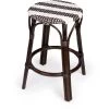 - Bar Stool Has Medium Brown Stained Hardwood Solid H-Shaped Legs.