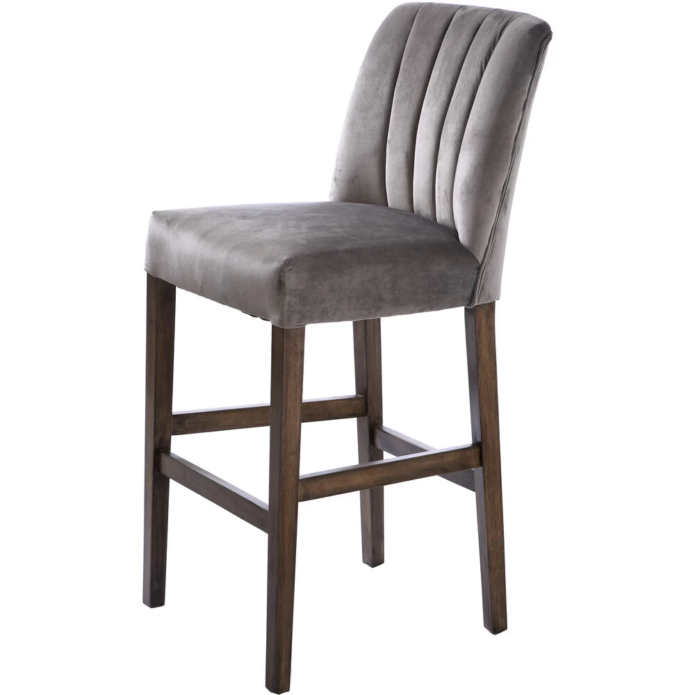 - Bar Stool Is Covered In A Velvet Fabric That Has A Dove Gray Finish. The Interior Velvet Fabric Of Backrest Has A Ribbed Design, While The Seating Area & Exterior Of Backrest Have A Smooth Design.