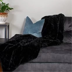 Wrap yourself up in the supreme luxury of our Angora Faux Fur Throw. This luxurious faux fur throw features a high pile and soft hand. The sumptuous black faux fur will add a luxurious accent to your sofa, bed or anywhere else a throw can be added. Or simply curl up and let relaxation take hold. The fabric is made from polyester and it is recommended that the piece be dry cleaned so as not to damage the pile of the faux fur. Lined