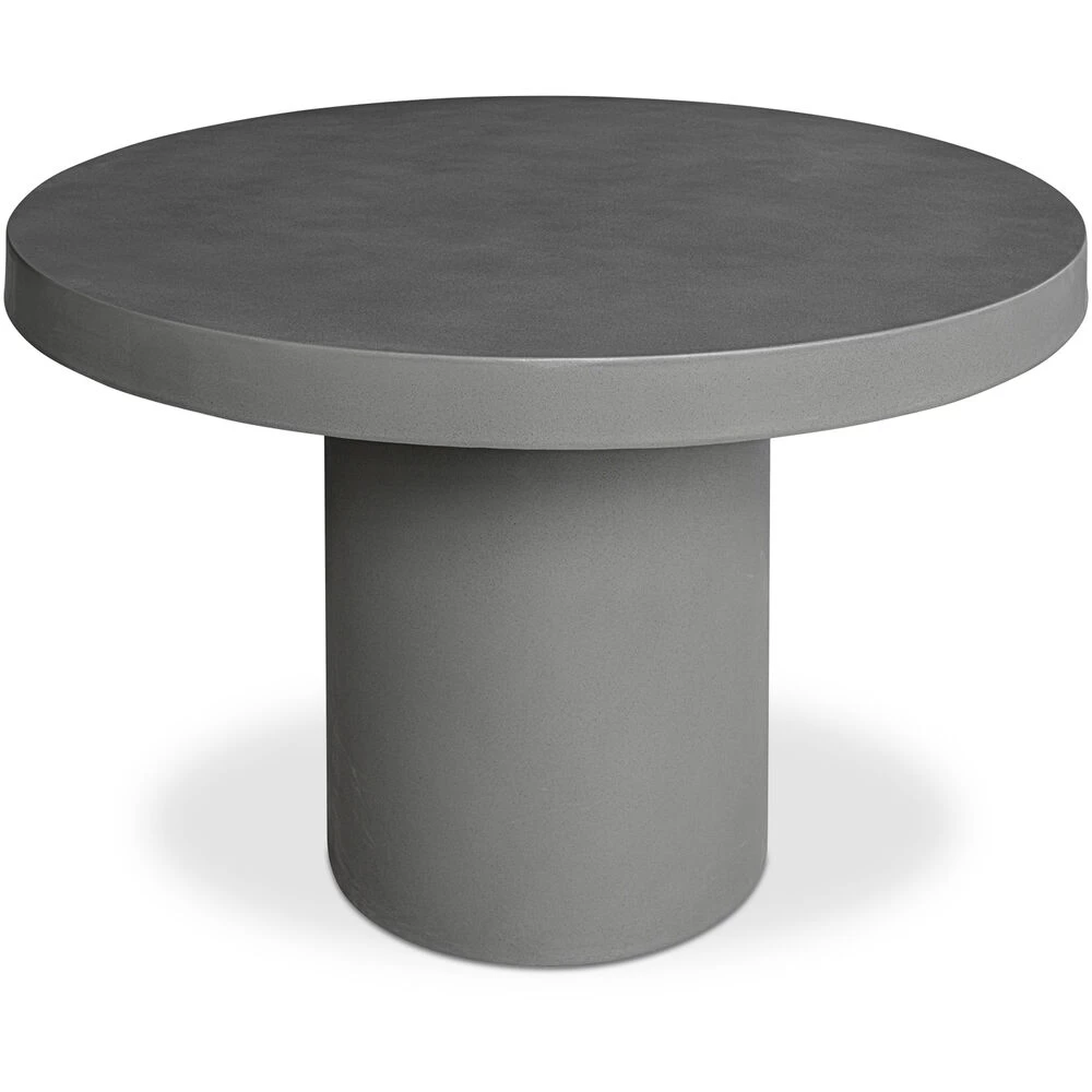Keen on concrete to bring the outdoors a little closer. A hard material for softer contrast, the Cassius outdoor patio table is the perfect transitional piece for alfresco living. Both durable and eye-catching, this round pedestal table is made from fiber-reinforced concrete that helps to prevent cracking. Here to give your outdoor dining area a sleek, modern look with a hefty pillared base and a thick, matte, circular tabletop. Ideal for any garden or patio setting, this dining table works indoors as well as a stately, contemporary design.