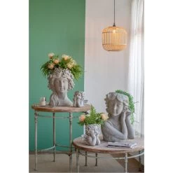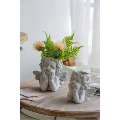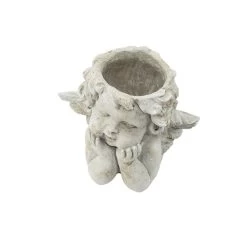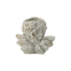 This 10? large cherub angel planter is a divine option for housing a favorite planting. It’s an off white angel with classic, beautifully sculpted wings and curls, and a sweetly rounded face. This planter will fit perfectly on larger tabletops or an empty corner of the patio.