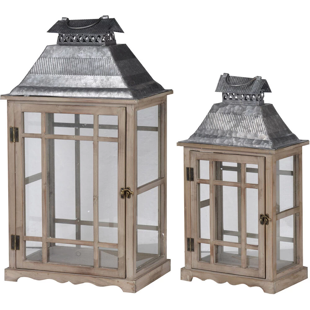This set of two Classic Scape Lanterns offers plenty of options for décor and display. Not only are these lanterns perfect for highlighting decorative candles, they also make lovely terrarium-like homes for miniature potted plants and succulent arrangements. Each one is made from a traditional glass and wood frame with an adorable metal roof.