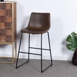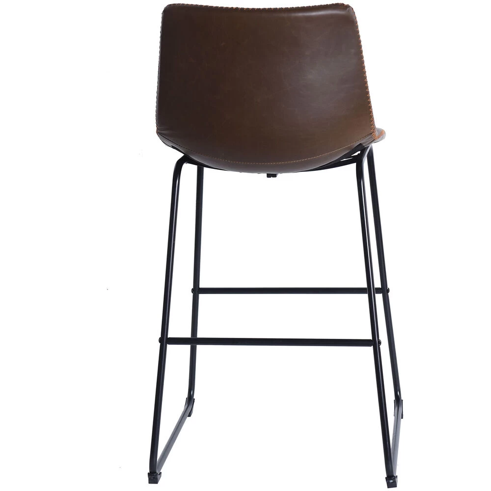 Clayton – Bar Stool – Vintage Faux Leather Upholstery – Whiskey Brown, Black Finish