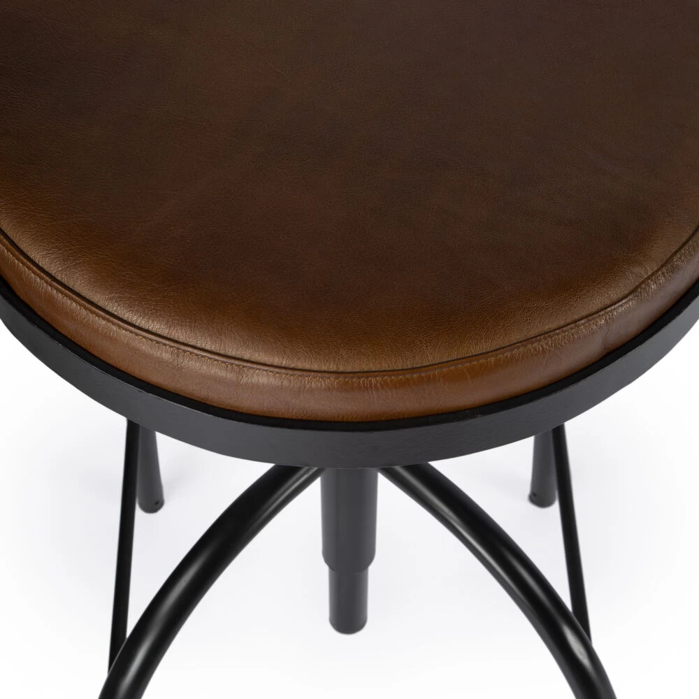 Butler Specialty Company Clyde Leather 25″ Adjustable Bar Stool, Medium Brown