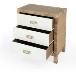 Butler Specialty Company Corfu 3 Drawer Rattan Nightstand, Natural and White
