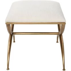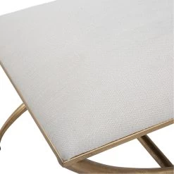 Classic Yet Stylish, This Small Bench Features A Curved Iron Frame Finished In An Elegant Gold Leaf. The Cushioned Top Is Upholstered In A Crisp White Fabric, Doubling As A Comfortable Seat Or Footrest.