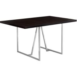 DINING TABLE – 36″X 60″ / ESPRESSO / CHROME METAL