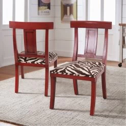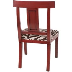 Dann Foley – Wooden Dining Chair – Cherry Wood Finish – Brown & White Zebra Patterned Fabric Seat