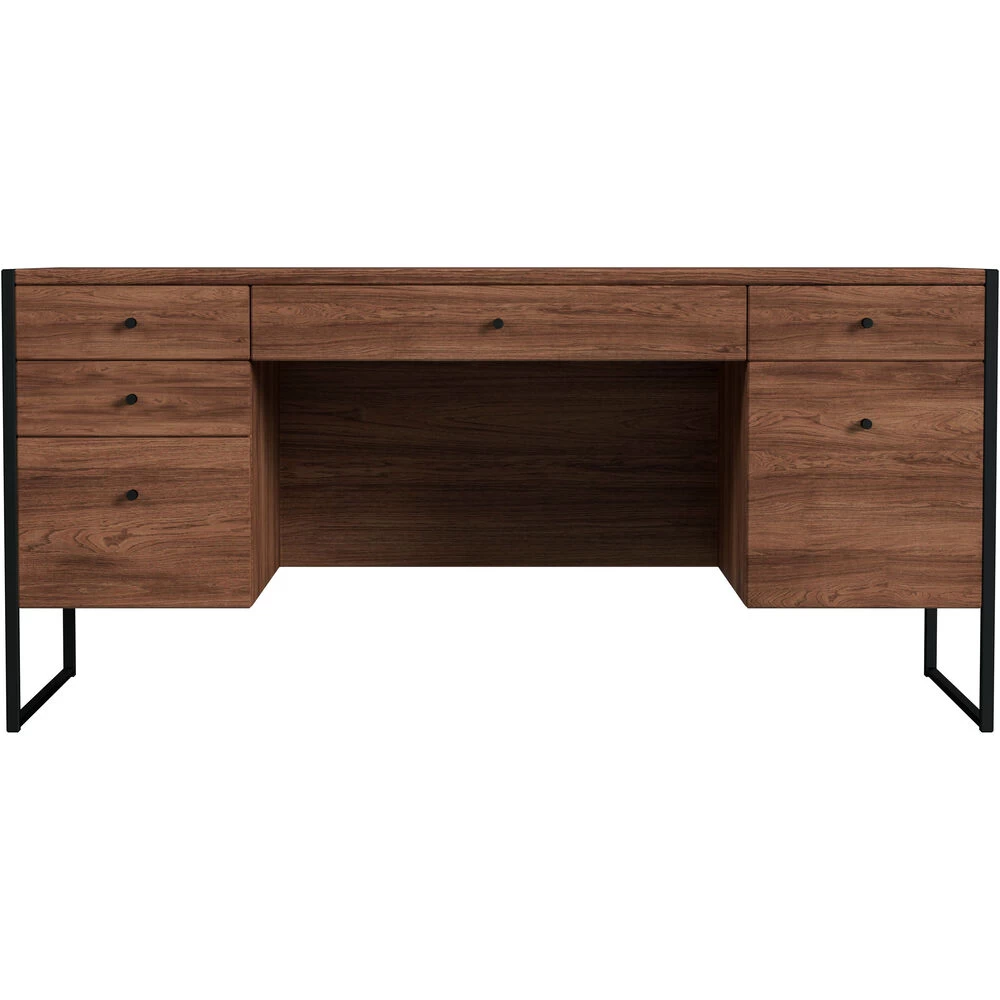 Drake 2 Drawer Iron and Wood Writing Desk in Medium Brown