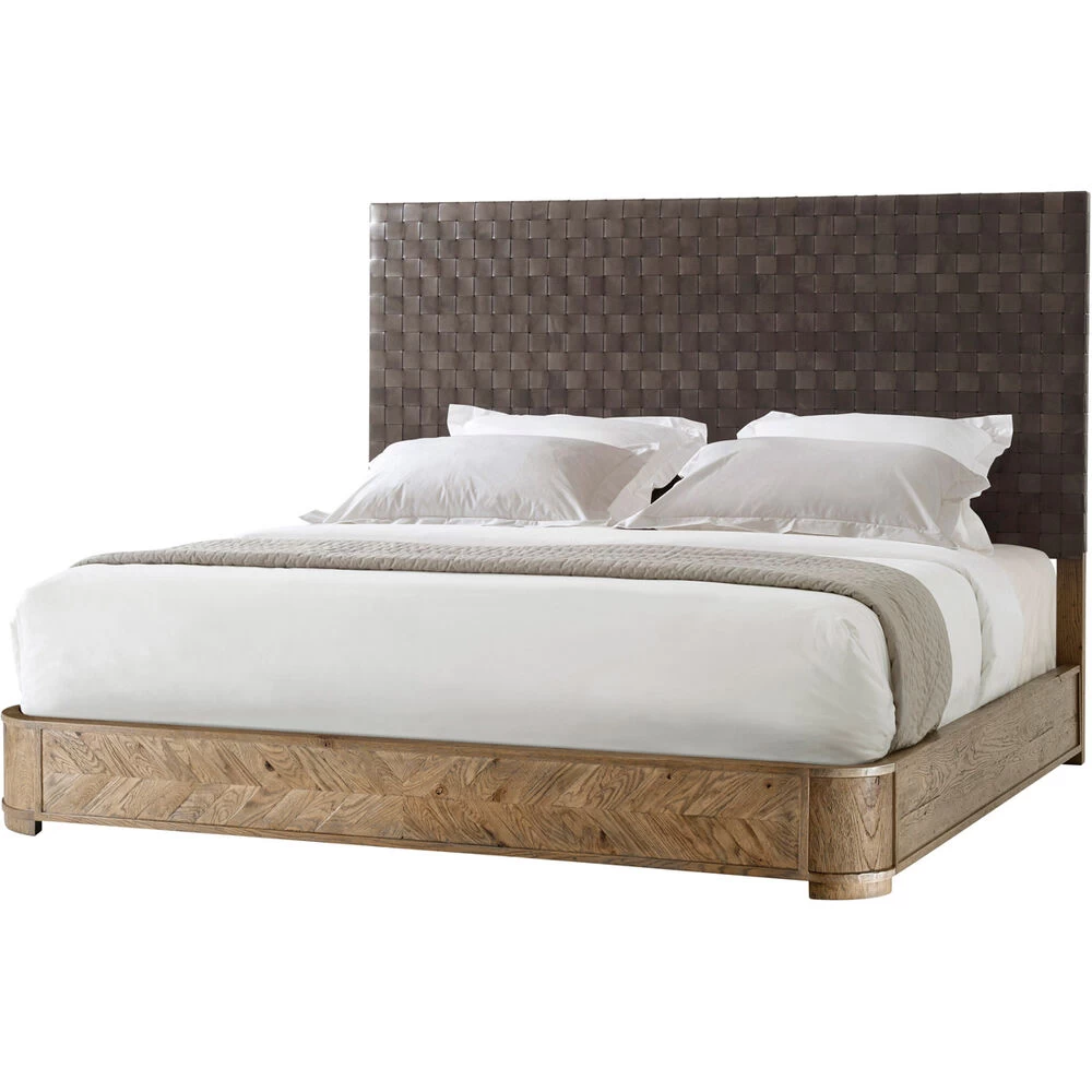 Hand-woven Leather Lattice HeadboardOak and Rustic Oak Veneer’Echo Oak’ FinishChevron Parquetry Footboard