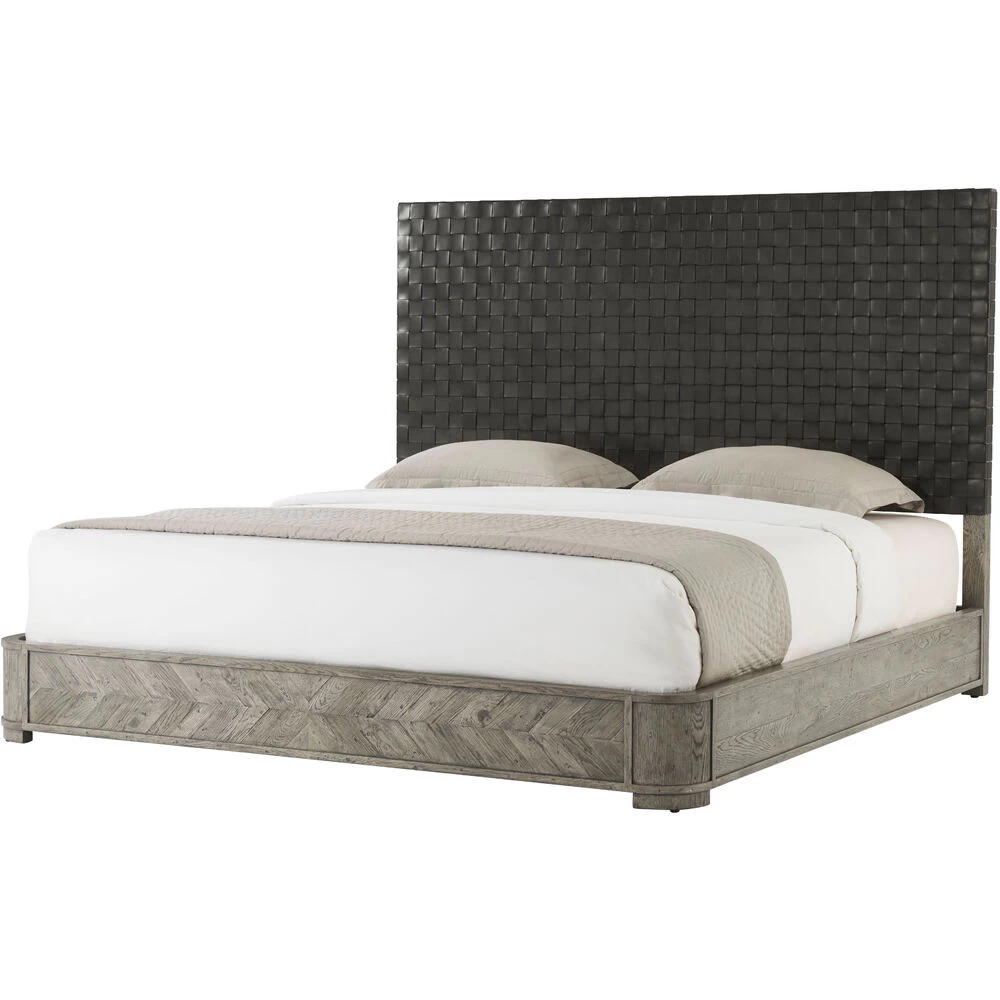Hand-woven Leather Lattice HeadboardOak and Rustic Oak VeneerGrey Echo Oak FinishChevron Parquetry Footboard